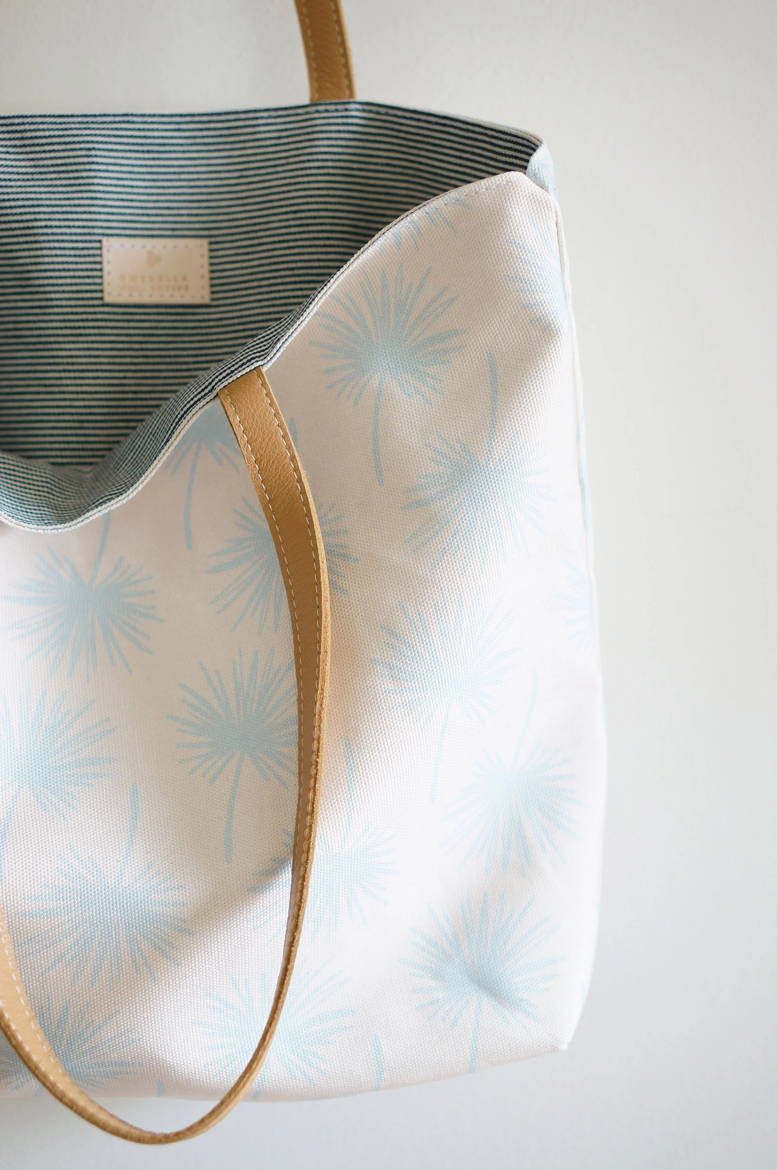 A small bag collection with a custom tropical textile.